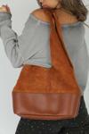 Moom Bag Taba Süet Ek Portföylü Büyük Boy Omuz Çantası