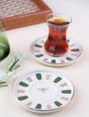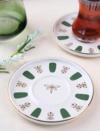 Tabak Evi Porselen Acem Zade Yeşil Çay Tabağı 12,5cm 2 li Bulaşık makinesinde yıkanması uygundur. Bardak taban çapı 5cm olan bardaklar ile uyumludur.