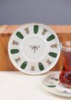 Tabak Evi Porselen Acem Zade Yeşil Çay Tabağı 12,5cm Tekli Bulaşık makinesinde yıkanması uygundur. Bardak taban çapı 5cm olan bardaklar ile uyumludur.