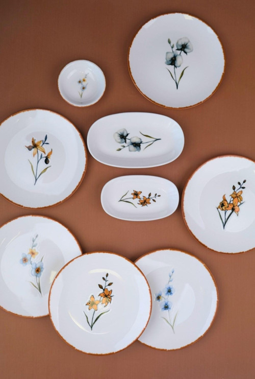 Tabak Evi Porselen Azelya Kahvaltı ve İkram Takımı 6 Kişilik 14 Parça
