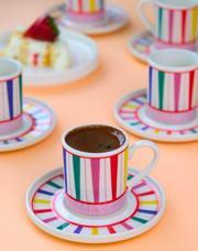 Tabak Evi Porselen Color Stripe Kahve Fincan Takımı 90cc 6 Kişilik 12 Parça