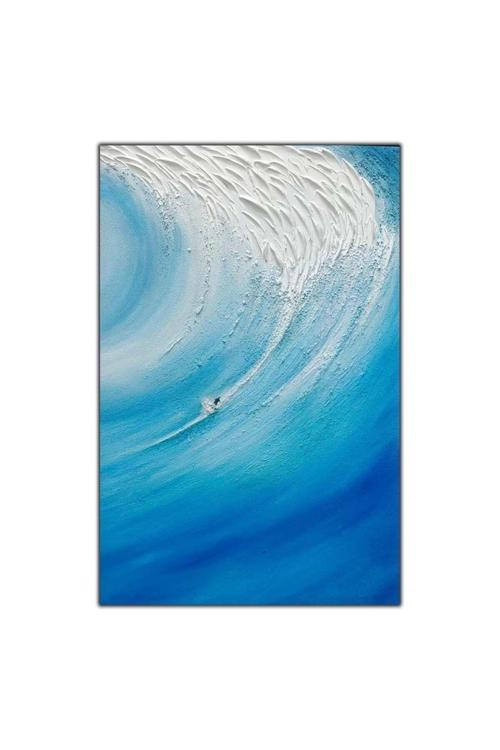 Tablo Dekor Mavi Büyük Dalga Yağlı Boya Dokulu Tablo