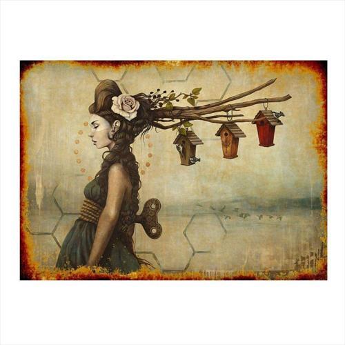 Tablomega Kadın Ve Kuş Yuvası Modern Ahşap Tablo 50Cmx 70Cm
