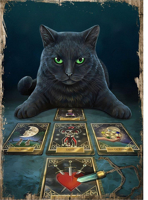 Tarot Falı Bakan Kedi Mdf Poster 50Cmx 70Cm