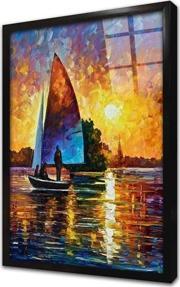 Gün Batımı Yelkenli Çerçeveli Cam Tablo