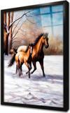Siyah Yeleli Ikili At Çerçeveli Cam Tablo 20x30 cm