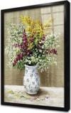 Tablosan Vazoda Çiçekler Çerçeveli Cam Tablo