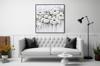 Yağlı Boya Dokulu Tablo Soyut Beyaz Çiçekler Siyah Çerçeveli U02012
