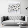 Tablosan Yağlı Boya Dokulu Tablo Soyut Beyaz Çiçekler Siyah Çerçeveli U02012