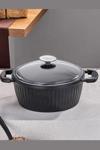 Taç Valeriya Döküm Cam Kapak Derin Tencere 22 Cm Siyah
