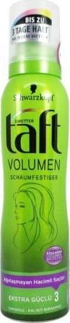 Taft volume köpük 150 ml Kolajen içeriği ile saça hacim verir ve 48 saate kadar ekstra güçlü tutuş sağlar. Tutuş seviyesi: 3