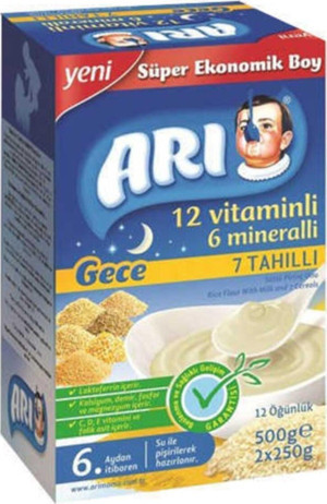 Arı Gece 12 Vitaminli 6 Mineralli Sütlü 7 Tahıllı Pirinç Unu 6'lı 500 gr