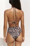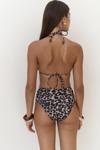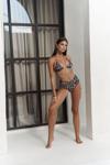 Yüksek bel, önü v kesim, büzgü detaylı elastik bel, leopar desenli, astarlı bikini altı.