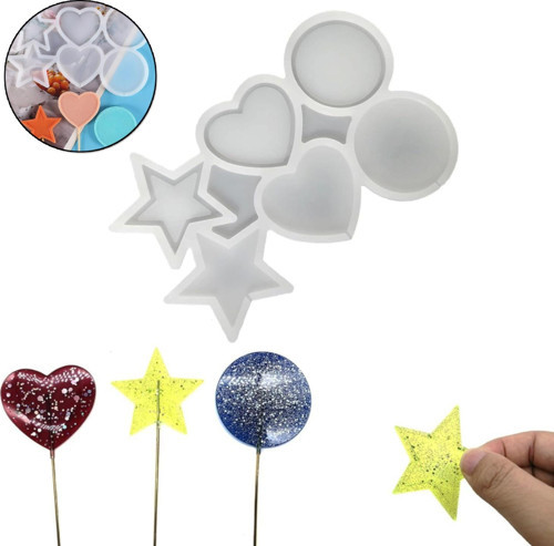 Tahtakale Toptancı Silikon Çok Şekilli Lolipop Kalıbı (Yıldız, Yuvarlak, Daire) - Şeker & Çikolata Kalıbı