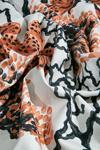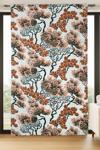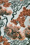 - Doğal ağaç ve çiçek motifleri, siyah konturlar ve turuncu-kahverengi tonlar.
