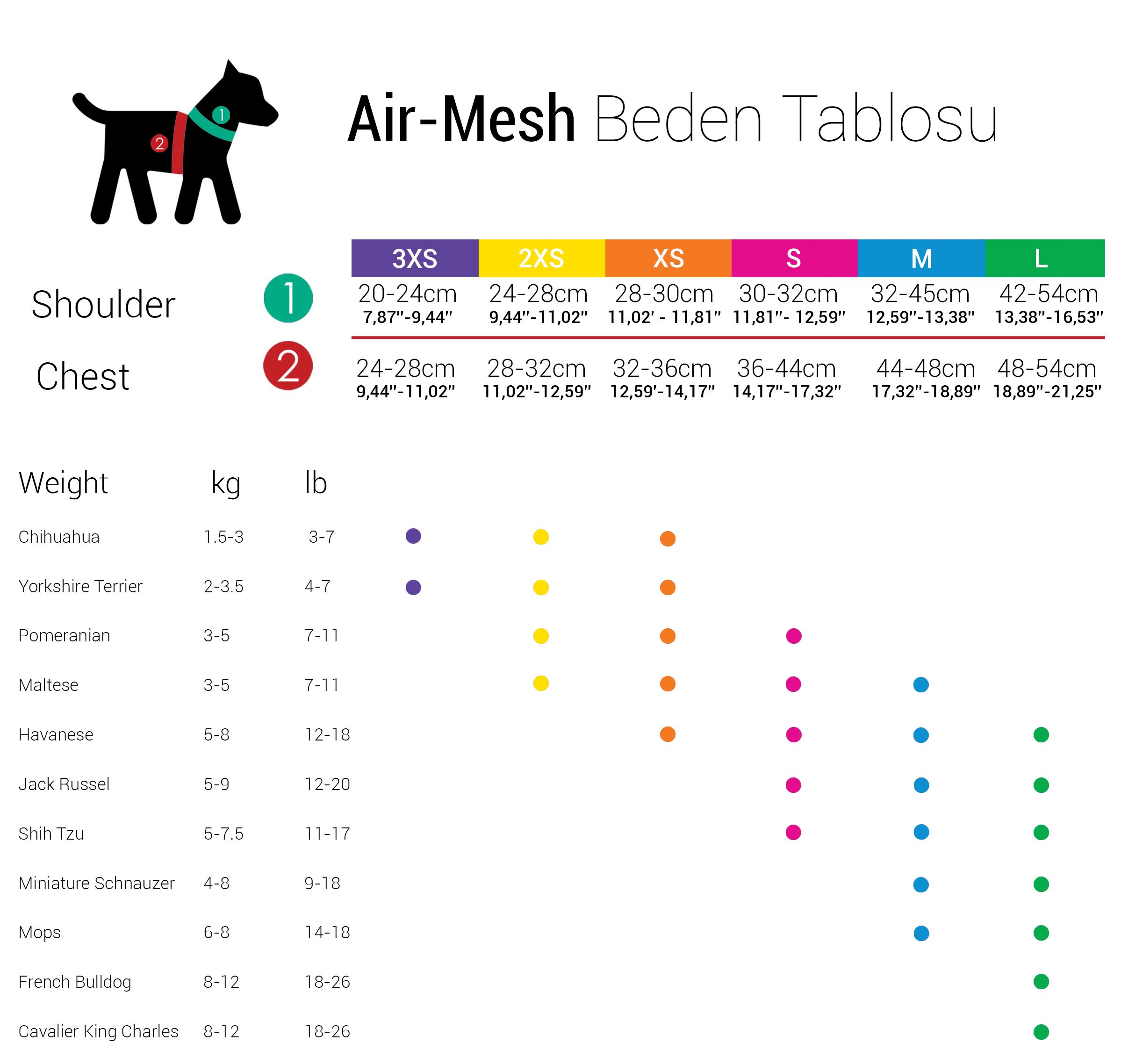 Küçük ve orta ırk köpekler için hafif, rahat, dayanıklı ve canlı renklerde göğüs tasmaları.