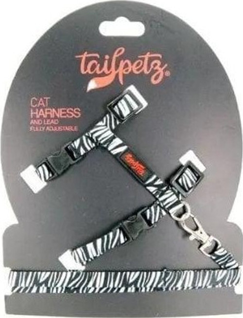 Tailpetz Harness Ayarlanabilir Kedi Göğüs ve Gezdirme Tasması Zebra 22-30 Cm
