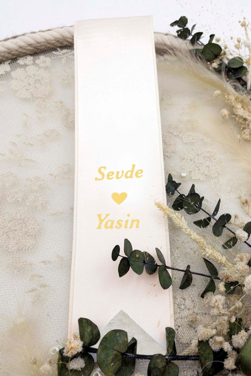 TAKI KURDELESİ (İsimli) ÜRÜN: Saten Kurdeleye Yazı Kumaş Folyosu ile yazılmıştır Elde üretilmiştir.
