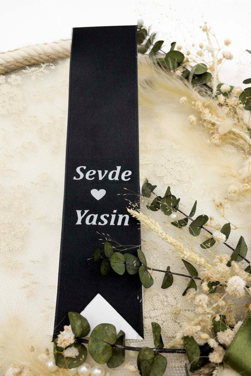 TAKI KURDELESİ (İsimli) ÜRÜN: Saten Kurdeleye Yazı Kumaş Folyosu ile yazılmıştır Elde üretilmiştir.