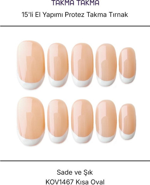 Takma Takma 15'li Ten Rengi 15' Kısa Oval KOV1467FI Tekrar Kullanılabilir El Yapımı Protez Takma Tırnak Ten Rengi-M