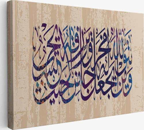 Talak Suresi 2 Ayet Yazılı Hat Sanatı Dekoratif Kanvas Tablo, Duvar Dekoru 3305