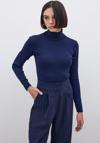 Tam balıkçı yaka, uzun kol, esnek, tam kalıp triko.