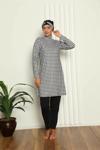 Çamaşır Kenti'nin özel tasarımı olan Tam Tesettür Dijital Desenli Mayo Siyah - Beyaz, plajda şıklığı ve rahatlığı bir arada arayan kadınlar için ideal bir seçimdir.