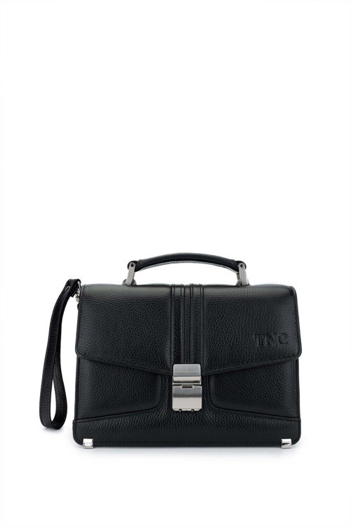 Tamer Tanca'nın şıklığı ve kalitesiyle öne çıkan erkek hakiki deri siyah floter el çantası, tarzınıza zarif bir dokunuş katıyor.