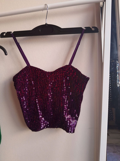 PULPAYET İŞLEMELİ KALP YAKA MOR CROP
