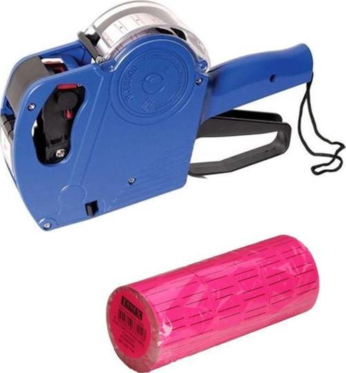 Tanex Eco Mavi Etiket Makinesi TNX-5500ECO41 + Tanex Fiyat Etiketi Çizgili 12 mm x 21 mm Pembe 6'lı Rulo