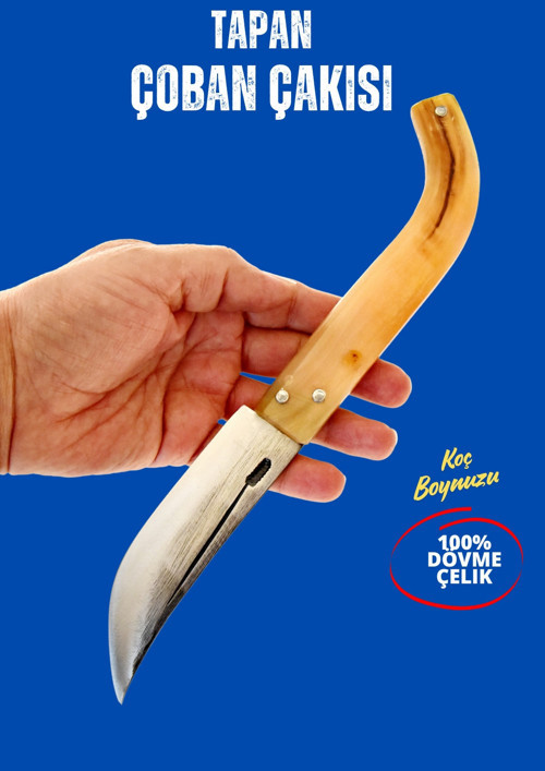 Tapan Çoban Bıçağı 30 cm Koç Boynuzu Yay Çeliği Sarı Kızıl Koleksiyonluk