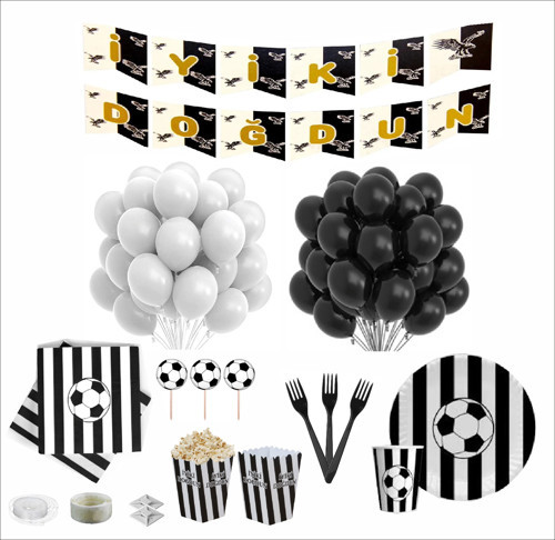 Taraftar Siyah Beyaz 8 Kişilik Doğum Günü Seti