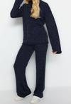 Tarz Kadın Modern Moda Normal Bel Boru Paça Bisiklet Yaka Yünlü Degrade Triko Alt-Üst Takım - Bu kadın alt üst takım, rahatlığı ve zarafeti bir araya getirerek her ortamda şıklığınızı tamamlar. Hafif ve yumuşak kumaşı ile gün boyu konfor sunarken, zarif tasarımı sayesinde iş veya günlük giyimde kolayca tercih edilebilir. Esnek bel yapısı ve modern kesimi hareket özgürlüğü sağlarken, farklı renk seçenekleriyle her tarza uyum sağlar. Bu takım, günlük stilinize konfor katarken şıklığı da yanınızda taşımanıza olanak tanır.