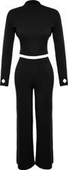 Tarz Kadın Modern Moda Normal Bel Boru Paça Dik Yaka Crop Parmak Detaylı Triko Alt-Üst Takım - Bu kadın alt üst takım, rahatlığı ve zarafeti bir araya getirerek her ortamda şıklığınızı tamamlar. Hafif ve yumuşak kumaşı ile gün boyu konfor sunarken, zarif tasarımı sayesinde iş veya günlük giyimde kolayca tercih edilebilir. Esnek bel yapısı ve modern kesimi hareket özgürlüğü sağlarken, farklı renk seçenekleriyle her tarza uyum sağlar. Bu takım, günlük stilinize konfor katarken şıklığı da yanınızda taşımanıza olanak tanır.