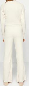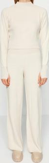 Ersefa Tarz Kadın Modern Moda Normal Bel Boru Paça Dik Yaka Crop Parmak Detaylı Triko Alt-Üst Takım