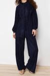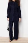 - - Kalıp:Regular - Kumaş Tipi:Örme - Desen:Düz - Renk:Lacivert - Cep:Cepsiz - Kol Boyu:Uzun - Kol Tipi:Standart Kol - Dokuma Tipi:Bürümcük - Sürdürülebilirlik Detayı:Hayır - Siluet:Wide Leg - Boy:Uzun - Persona:Cool & Comfort - Ortam:Casual/Günlük - Materyal Bileşeni:100% Polyester - Yıkama Talimatı:T10 - Yaş:Tüm Yaş Grupları -