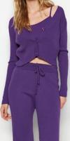 Ersefa Tarz Kadın Modern Moda Normal Bel Geniş Paça V Yaka Fitillli Bluz Hırka Pantolon Triko Alt-Üst Takım