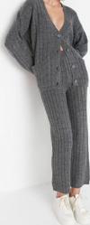 Tarz Kadın Modern Moda Normal Bel Geniş Paça V Yaka Geniş Kalıp Yumuşak Dokulu Triko Alt-Üst Takım