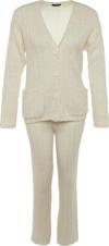 - - Kumaş Tipi:Triko - Kalıp:Oversize - Alt-Üst Takım:Hırkalı Pantolonlu - Desen:Düz - Yaka Tipi:V Yaka - Renk:Kahverengi - Cep:Cepsiz - Kol Boyu:Uzun - Kol Tipi:Düşük Kol - Kalınlık:Orta - Bel:Normal Bel - Paça Tipi:Geniş Paça - Siluet:Basic - Ortam:Casual/Günlük - Boy:Regular - Dokuma Tipi:Tek Plaka - Persona:Cool & Comfort - Kemer/Kuşak Durumu:Kemersiz - Sürdürülebilirlik Detayı:Hayır - Materyal Bileşeni:69% Akrilik, ,31% Polyester - Yıkama Talimatı:Type 0 - Yaş:Tüm Yaş Grupları -