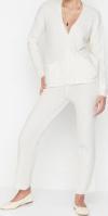 Tarz Kadın Modern Moda Normal Bel Geniş Paça V Yaka Geniş Kalıp Yumuşak Dokulu Triko Alt-Üst Takım - Bu kadın alt üst takım, rahatlığı ve zarafeti bir araya getirerek her ortamda şıklığınızı tamamlar.