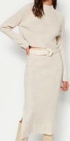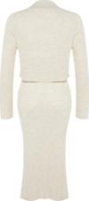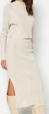 Ersefa Tarz Kadın Modern Moda Yüksek Bel Geniş Paça Bisiklet Yaka Crop Basic Etekli Triko Alt-Üst Takım