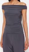 - - Kumaş Tipi:Örme - Kalıp:Slim - Desen:Düz - Yaka Tipi:Carmen Yaka - Renk:Gri - Cep:Cepsiz - Ürün Tipi:Düz - Kol Boyu:Uzun - Kol Tipi:Düşük Kol - Paça Tipi:Geniş Paça - Ortam:Casual/Günlük - Boy:Uzun - Dokuma Tipi:Sandy - Persona:Cool & Comfort - Sürdürülebilirlik Detayı:Hayır - Materyal Bileşeni:96% Polyester, ,4% Elastan - Yıkama Talimatı:T10 - Yaş:Tüm Yaş Grupları -
