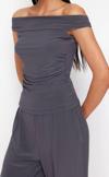 Tarz Kadın Normal Bel Geniş Paça Carmen Yaka Carmen Yaka Esnek Örme Bluz Pantolon Alt-Üst Takım - Bu kadın alt üst takım, rahatlığı ve zarafeti bir araya getirerek her ortamda şıklığınızı tamamlar.