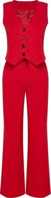 - - Kumaş Tipi:Dokuma - Materyal:Polyester - Kalıp:Fitted - Desen:Düz - Yaka Tipi:V Yaka - Renk:Kırmızı - Cep:Cepsiz - Kol Boyu:Uzun - Kol Tipi:Kalın Askılı - Paça Tipi:Geniş Paça - Siluet:Regular - Ortam:Business - Boy:Kısa - Dokuma Tipi:Finike - Persona:Smart/Office - Sürdürülebilirlik Detayı:Hayır - Materyal Bileşeni:100% Polyester - Yıkama Talimatı:T01 - Yaş:Tüm Yaş Grupları -