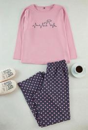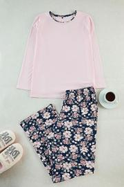 Tarz Rahat Büyük Beden Uzun Kollu Dar Paça Çiçek Desenli Desenli Örme Pijama Takımı