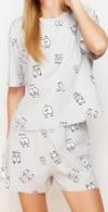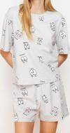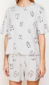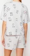 Tarz Rahat Kısa Kollu Boru Paça %100 Pamuklu Eğlence Desenli Örme Pijama Takımı