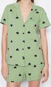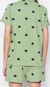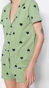 Tarz Rahat Kısa Kollu Boru Paça %100 Pamuklu Kalp Desenli Örme Pijama Takımı