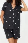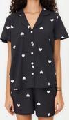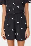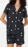 Tarz Rahat Kısa Kollu Boru Paça %100 Pamuklu Kalp Desenli Örme Pijama Takımı
