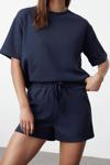 Tarz Rahat Kısa Kollu Boru Paça Waffle Kumaş Örme Pijama Takımı
