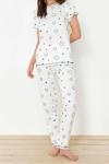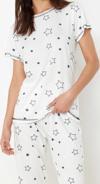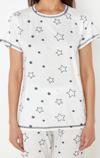 Tarz Rahat Kısa Kollu Boru Paça Yıldız Desenli Örme Pijama Takımı